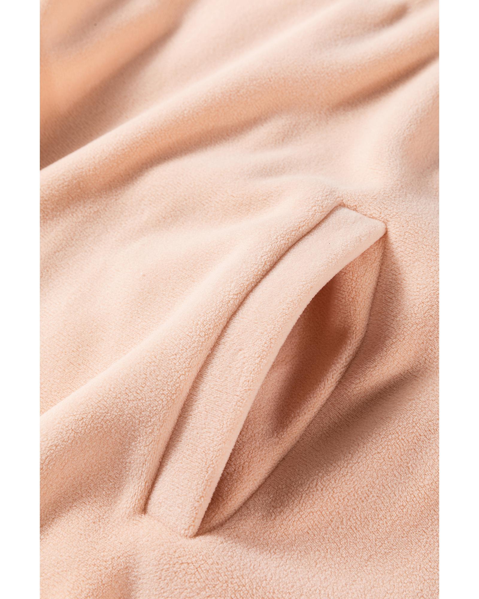 Light French Beige Colorblock Patchwork Half Zip Oversized Sherpa Hoodie – S