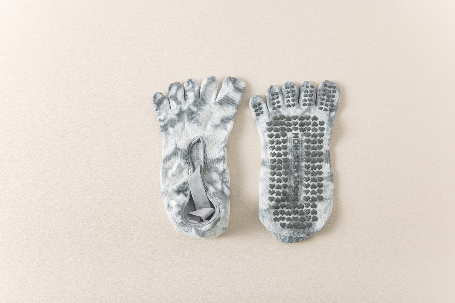 2 Pairs Grey Tie-Dye Non-Slip Yoga Socks for Women – Five-Toe Cotton Blend Socks for Pilates and Indoor Sports