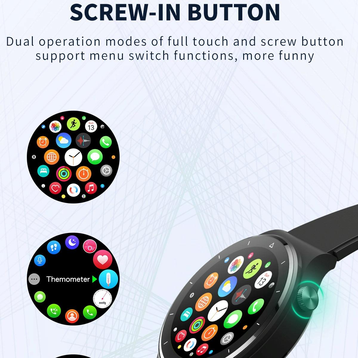 • Functions: Bluetooth Voice Call, Call Dialing, Communication Rate Synchronization, Call Record Query, Call Record, Message Reminder, Time Display, Record Steps, Calories, Movement Distance, Raise your Hand and Light the Screen, Sleep Monitoring, Running Track, Call Reminder, Sedentary Reminder, Alarm Clock, Music Control, Music Playback, Remote Control Photography, Find Mobile Phone, Water Reminder, Do not Disturb Mode, Dial Interface Switching, Whole Point Measurement, Heart Rate Test, Blood Oxygen Test, Blood Pressure Test, Body Temperature Test, Brightness Adjustment, Stopwatch, Countdown, Apple Health