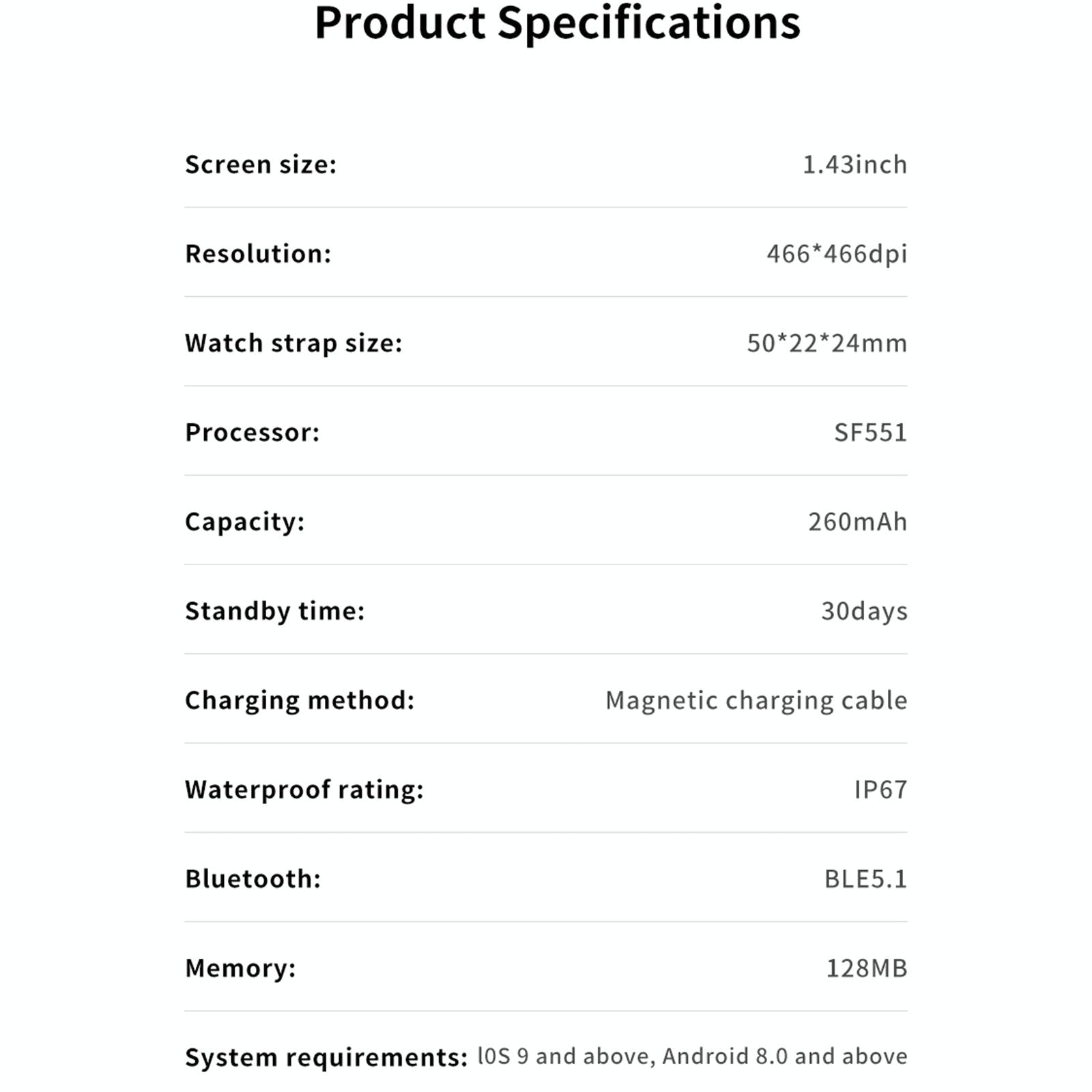 • 1 x 1.43 Inch Bt5.1 Smart Sport Watch With Health Monitoring