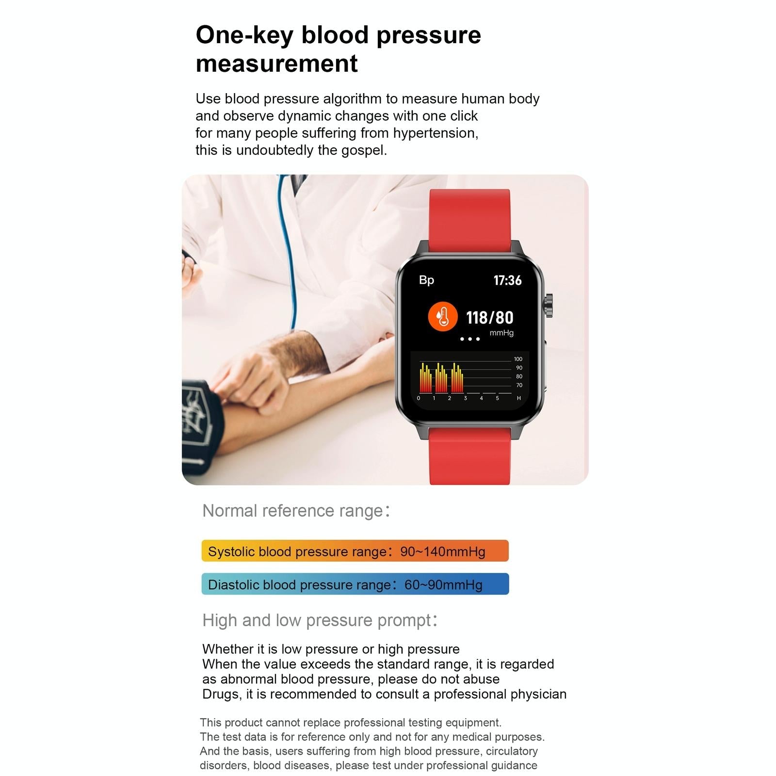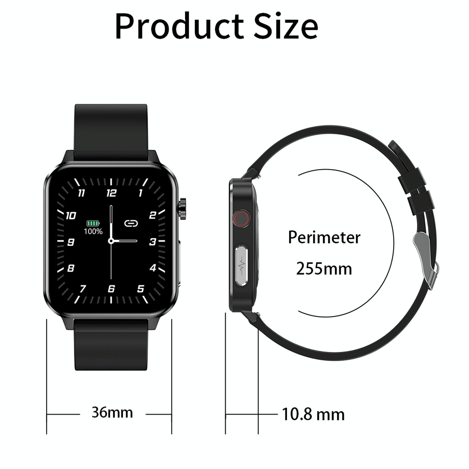 1.7 Inch Tft Colour Screen Ip68 Waterproof Smart Watch Support Blood Oxygen Monitoring / Body Temperature Monitoring / Ai Medical Diagnosis – Leather Strap – Black