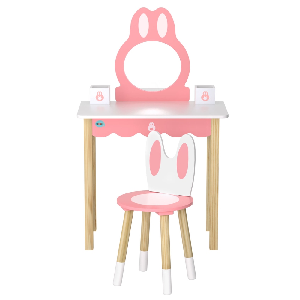 1 Set of Keezi Kids Dressing Table Wooden Bunny Pink