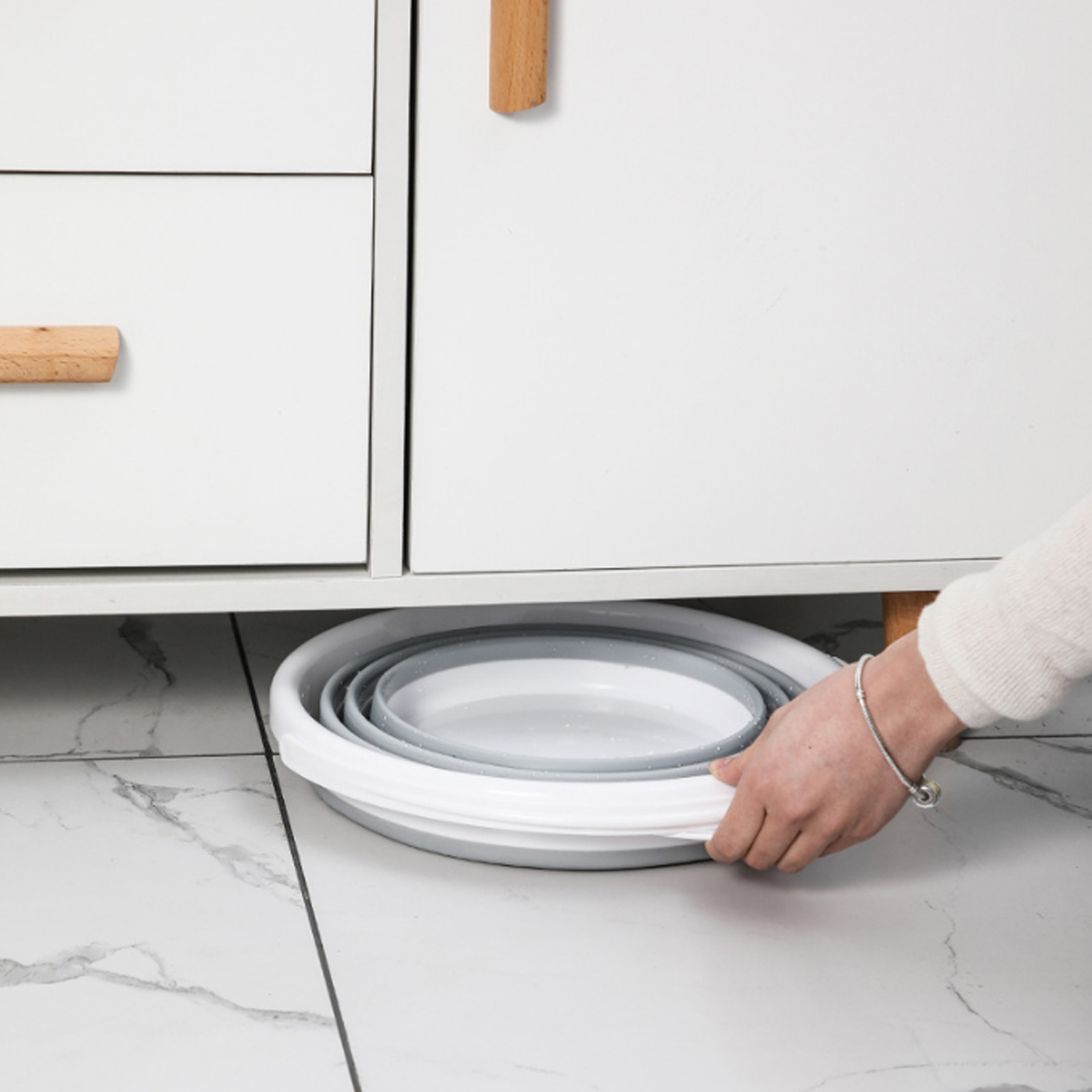 10 Litre Foldable Collapsible Bucket Silicone for Home/Hiking/Camping/Fishing – Grey/White