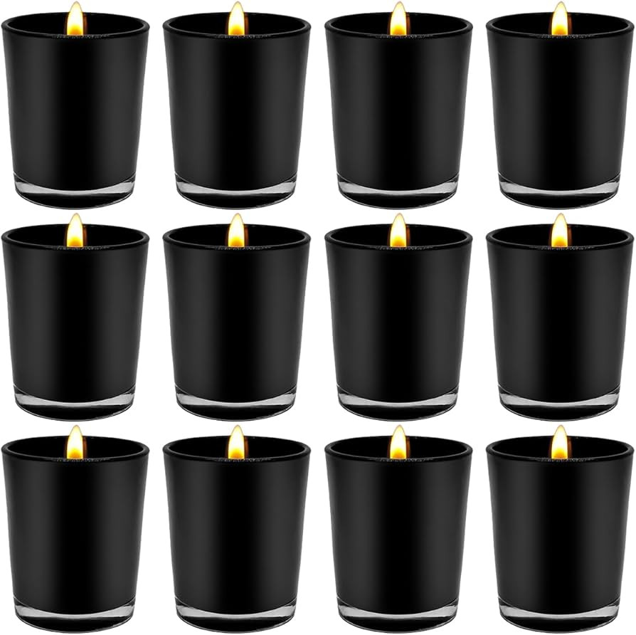 10 Pack of Matt Black Glass Tea Light Candle Holders –