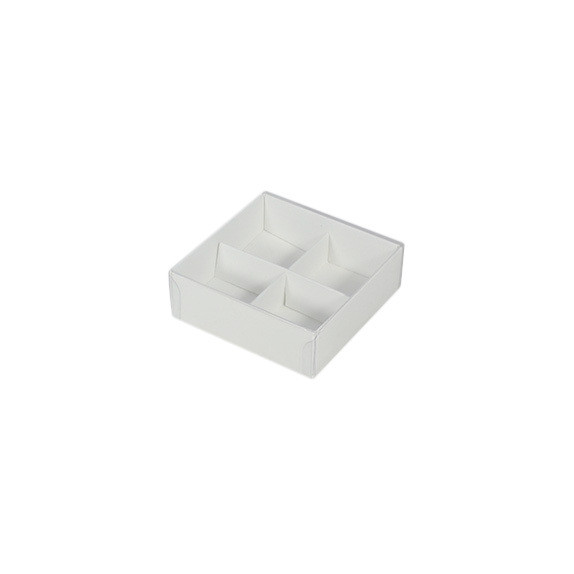 10 Pack of White Card Chocolate Sweet Soap Product Reatail Gift Box – 4 Bay Compartments – Clear Slide On Lid – 8x8x3cm