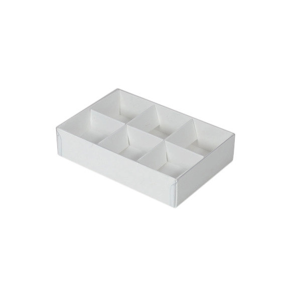 10 Pack of White Card Chocolate Sweet Soap Product Reatail Gift Box – 6 Bay Compartments – Clear Slide On Lid – 12x8x3cm