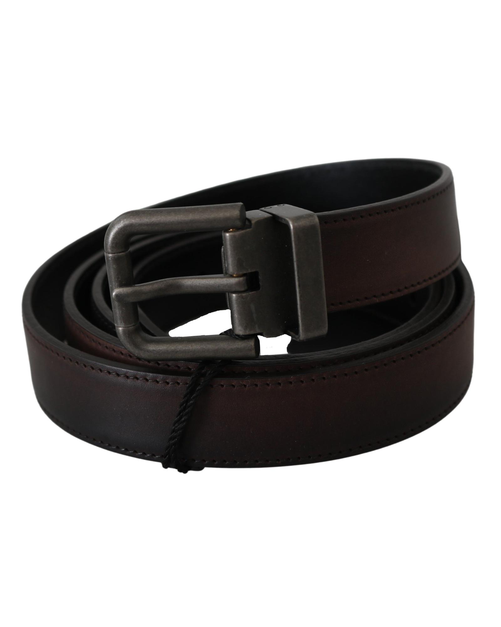 100% Authentic Dolce & Gabbana Leather Belt with Gray Buckle 115 cm Men