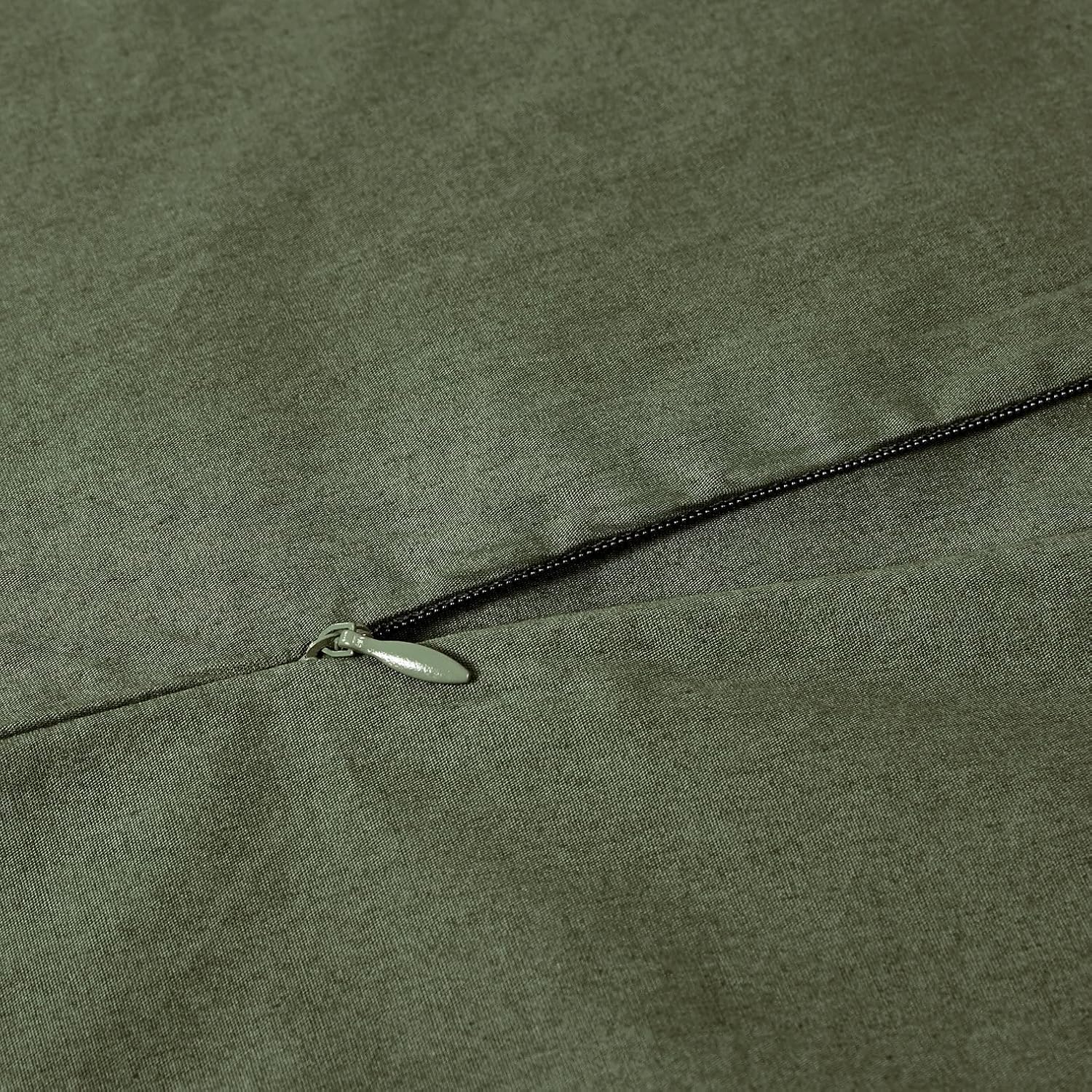 100% Cotton Vintage Washed Bed Quilt Cover Set – Khaki Green – Double Size
