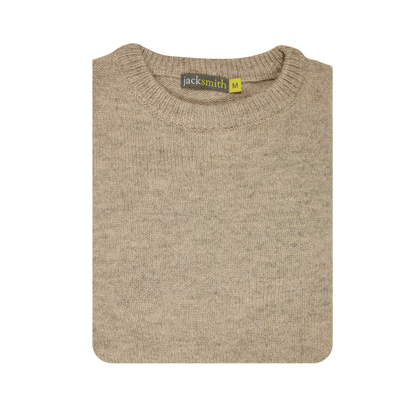 100% SHETLAND RAGG WOOL CREW Round Neck Knit JUMPER Pullover Mens Sweater Knitted – Beige – 4XL