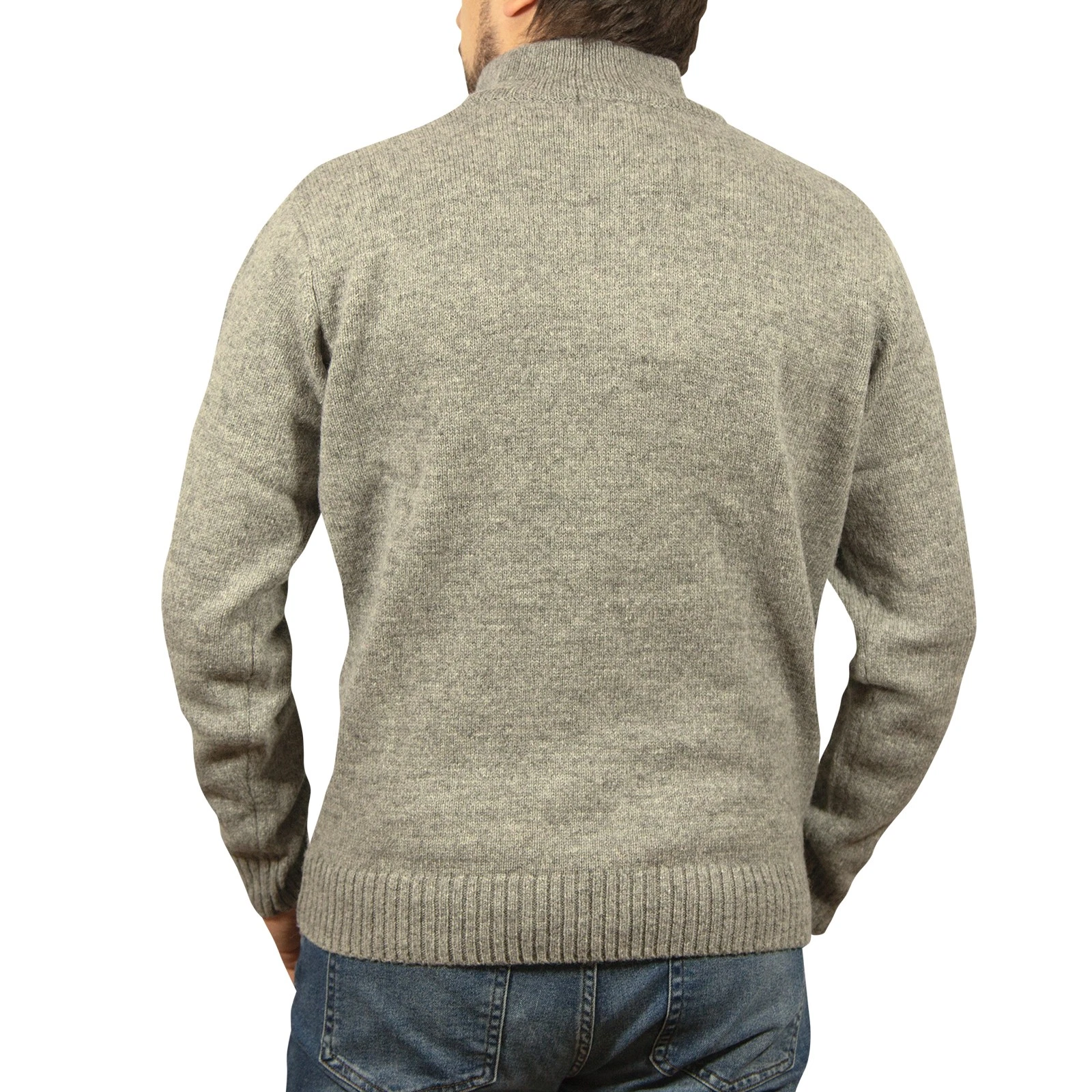 100% SHETLAND RAGG WOOL Half Zip Up Knit JUMPER Pullover Mens Sweater Knitted – Grey – M