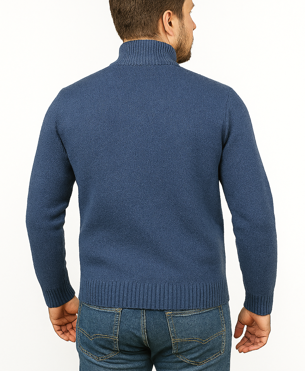100% SHETLAND RAGG WOOL Half Zip Up Knit JUMPER Pullover Mens Sweater Knitted in Sky – S