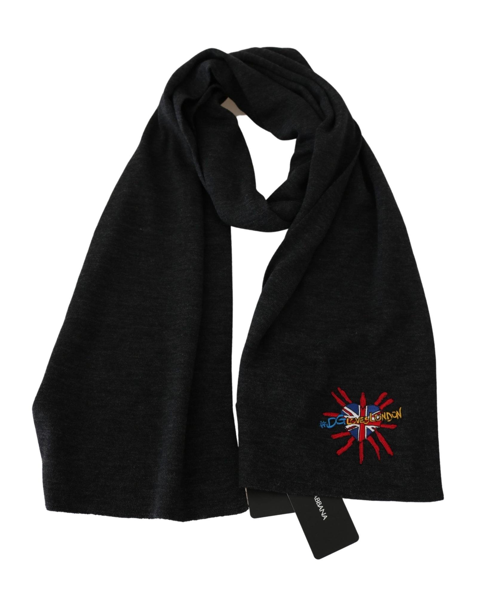 100% Wool Gray Scarf with #DGLovesLondon Embroidered Logo – Dolce & Gabbana One Size Women
