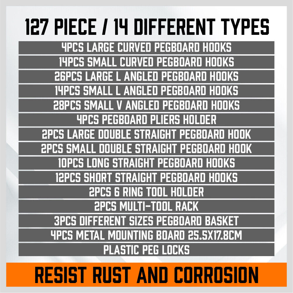 127Pc Pegboard Hooks Set Storage Baskets Organizer Hanger Inc. 4 Small Peg Board