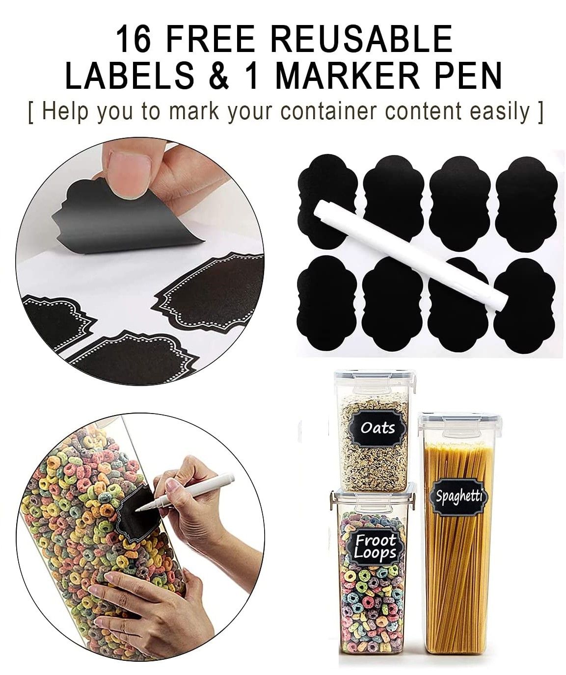14 Pieces Airtight Food Storage and BPA Free Plastic with Easy Lock Black Lids Labels for Kitchen
