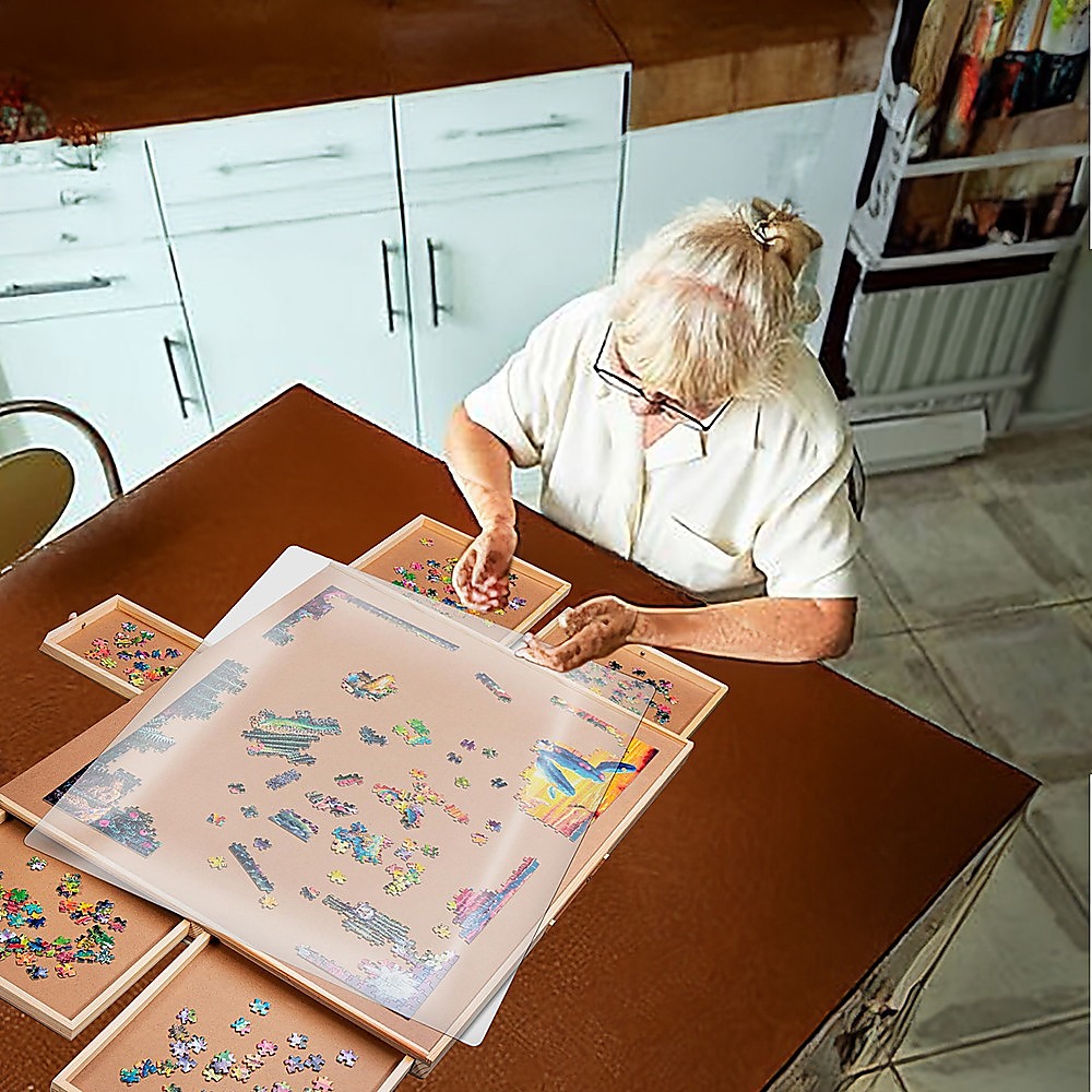 1500 Piece Rotating Wooden Jigsaw Puzzle Table 6 Drawers Board