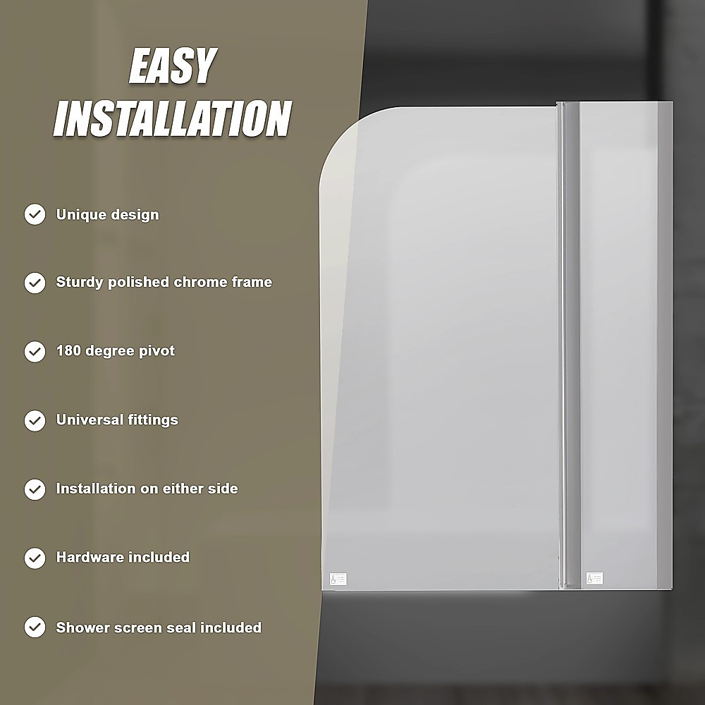 The pivot shower door is easy to install. The handy universal fittings allowing installation on the right or left side of your bath.