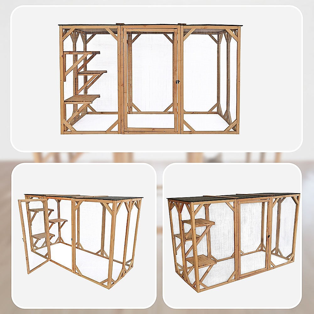 180cm Large Cat Enclosure Wooden Outdoor Cage with 3 Platforms