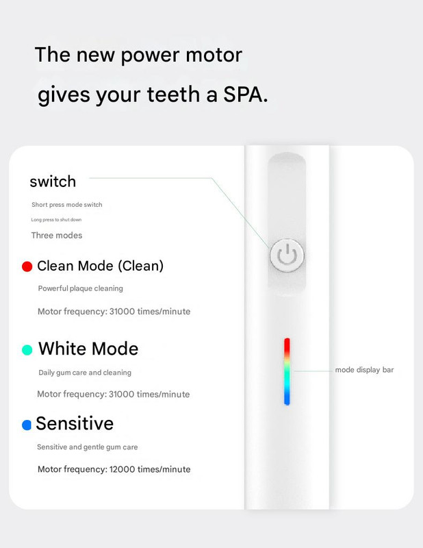 - White Mode: 31,000 VPM for daily whitening and maintenance.