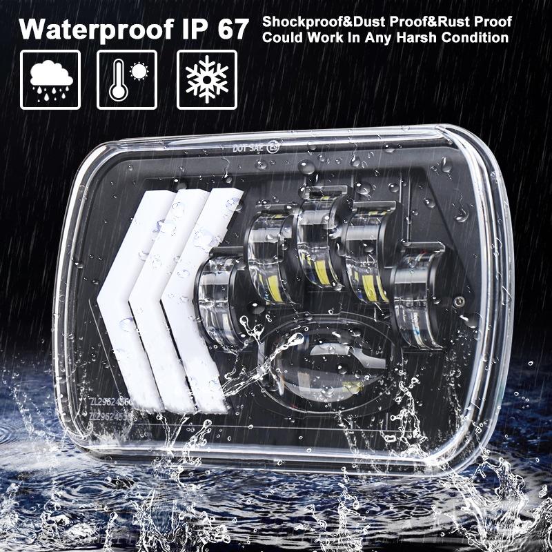 2 Pcs 5X7 Inch Car Modified Red Background Led Square Headlamp For Jeep Wrangler