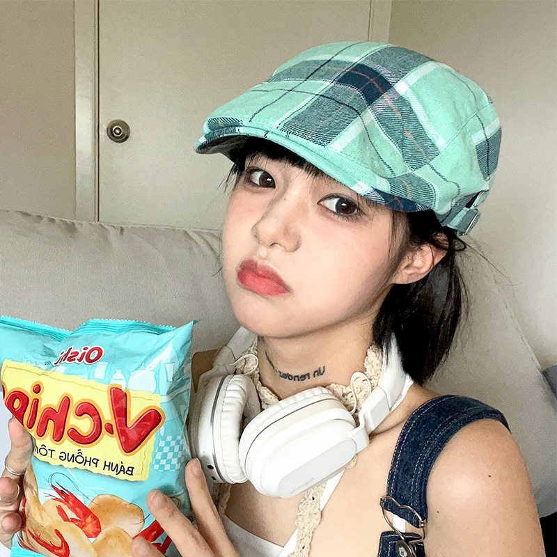 Retro Plaid Flat Cap – Lightweight & Adjustable Ivy Style Hat