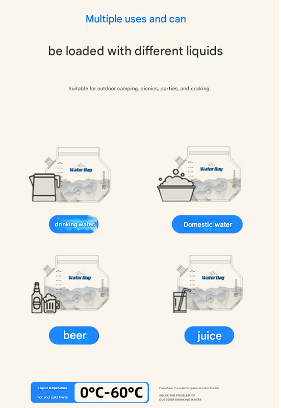• Food-Grade & Safe Material: Constructed from a durable, three-layer composite material (PET/PE/PA) that is BPA-free and completely food-safe. Suitable for storing drinking water, juice, or other cold beverages.
