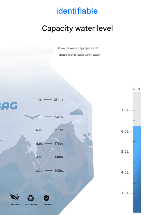 Ensure you have a reliable source of fresh water on your next outdoor trip with this 8L Foldable Water Bag. Engineered for convenience and durability, this large-capacity water carrier is an essential piece of equipment for camping, hiking, picnics, and emergency preparedness. Its smart, space-saving design and user-friendly features make it the perfect hydration companion.