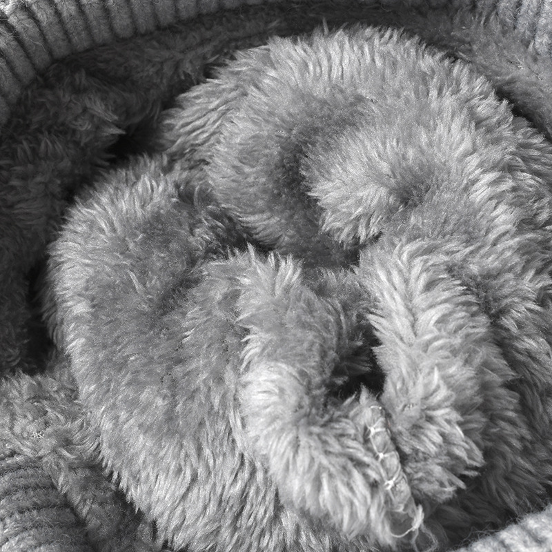 2-PCS Grey Stylish Two-Tone Pom-Pom Ear Warmer Knit Hat – Lined for Women
