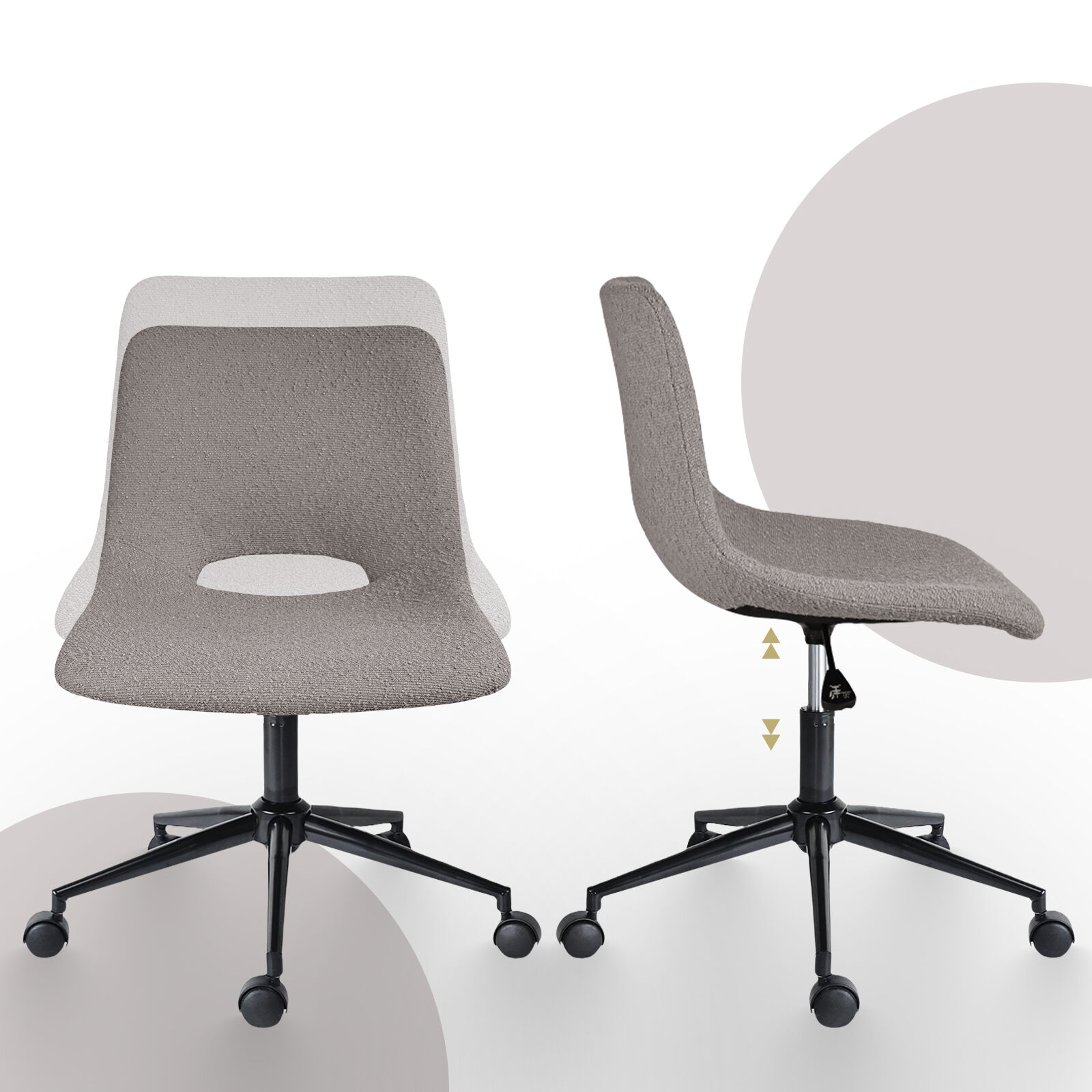2 Set Office Desk Chair – Loop Yarn Fabric Home Swivel Chair Cut-Out Seat HALO GREY