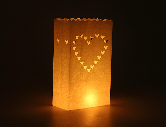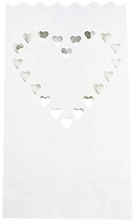 20 Pack White Heart Luminary Paper Candle Tea Light Lantern Bags Garden Wedding Anniversary Birthday Night Decorations Evening Party