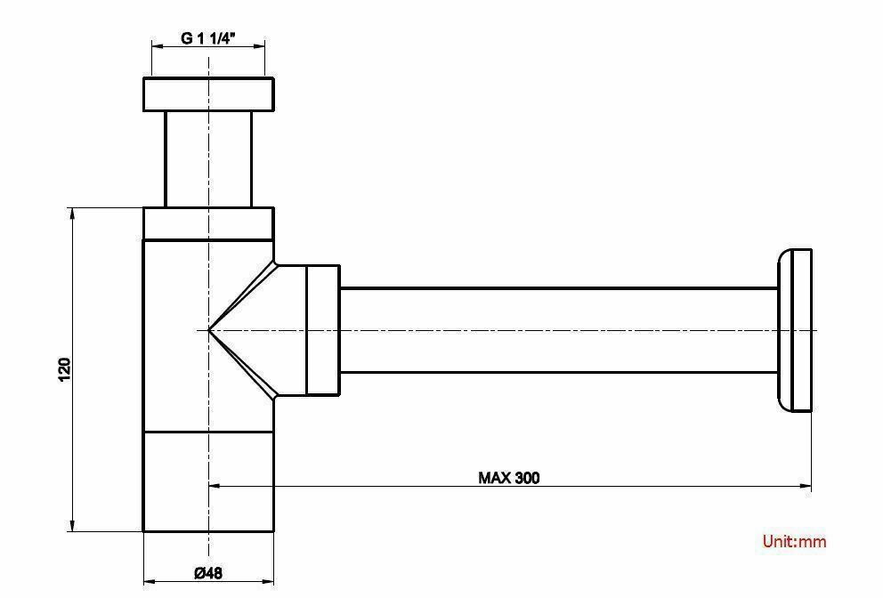 - Approx. 90mm adjustable from the bottom of the waste to the height of the bottle trap outlet