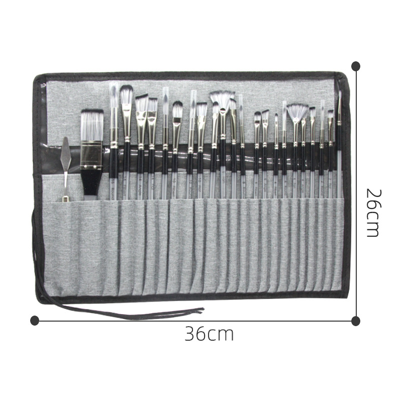 Unleash your creativity with this comprehensive 24-piece artist paint brush set, neatly organized in a durable canvas roll-up pouch. Ideal for beginners, students, and experienced artists, this versatile kit provides a wide range of brush types and sizes for various painting techniques and mediums.