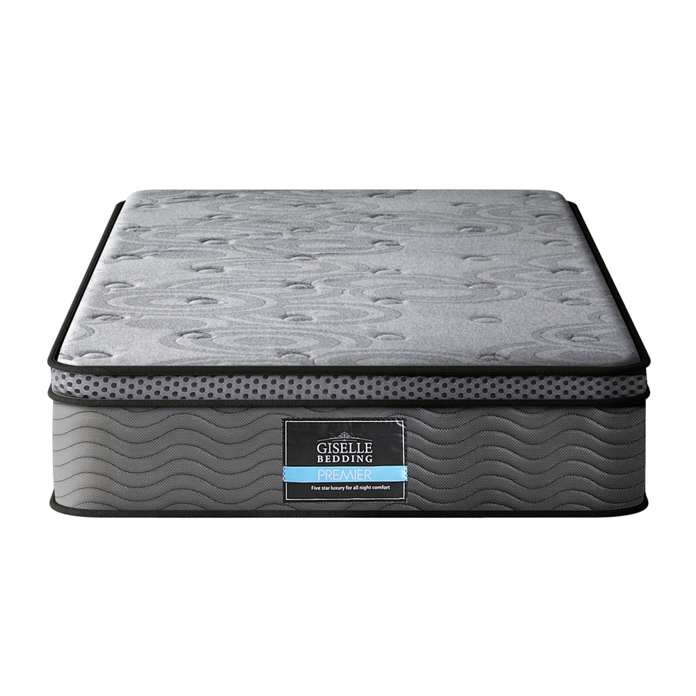 The Giselle Bedding Euro Top Mattress from the Reverie Series offers comfort and support with its 26cm thick profile. Featuring a Euro Top design, this mattress provides a plush, cushion-like surface while maintaining medium-firm support for optimal spinal alignment. The 280g knitted fabric cover is soft and breathable, promoting airflow and ensuring a cool and restful sleep. Designed with an independent coil system and pocket springs, this mattress minimizes motion transfer, allowing for uninterrupted sleep throughout the night.