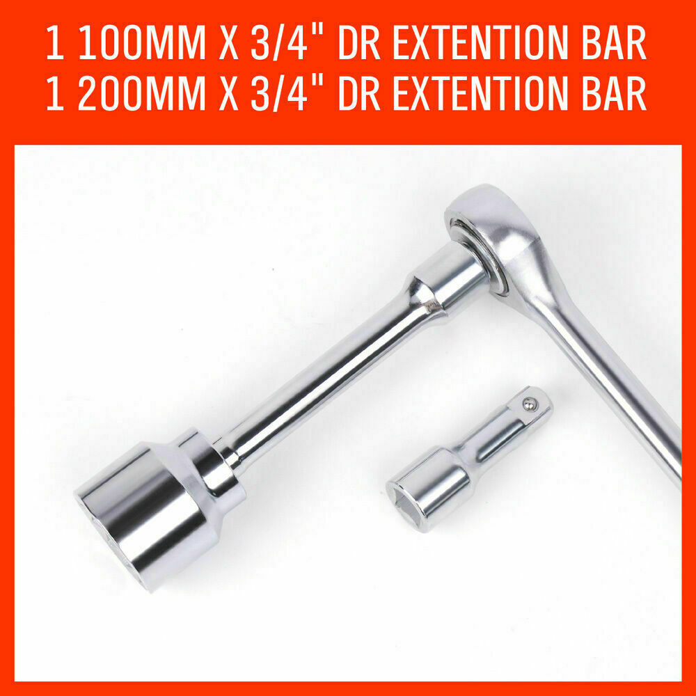 27Pc Heavy Duty Socket Wrench Set 3/4″ Drive Metric & Imperial Extension Case