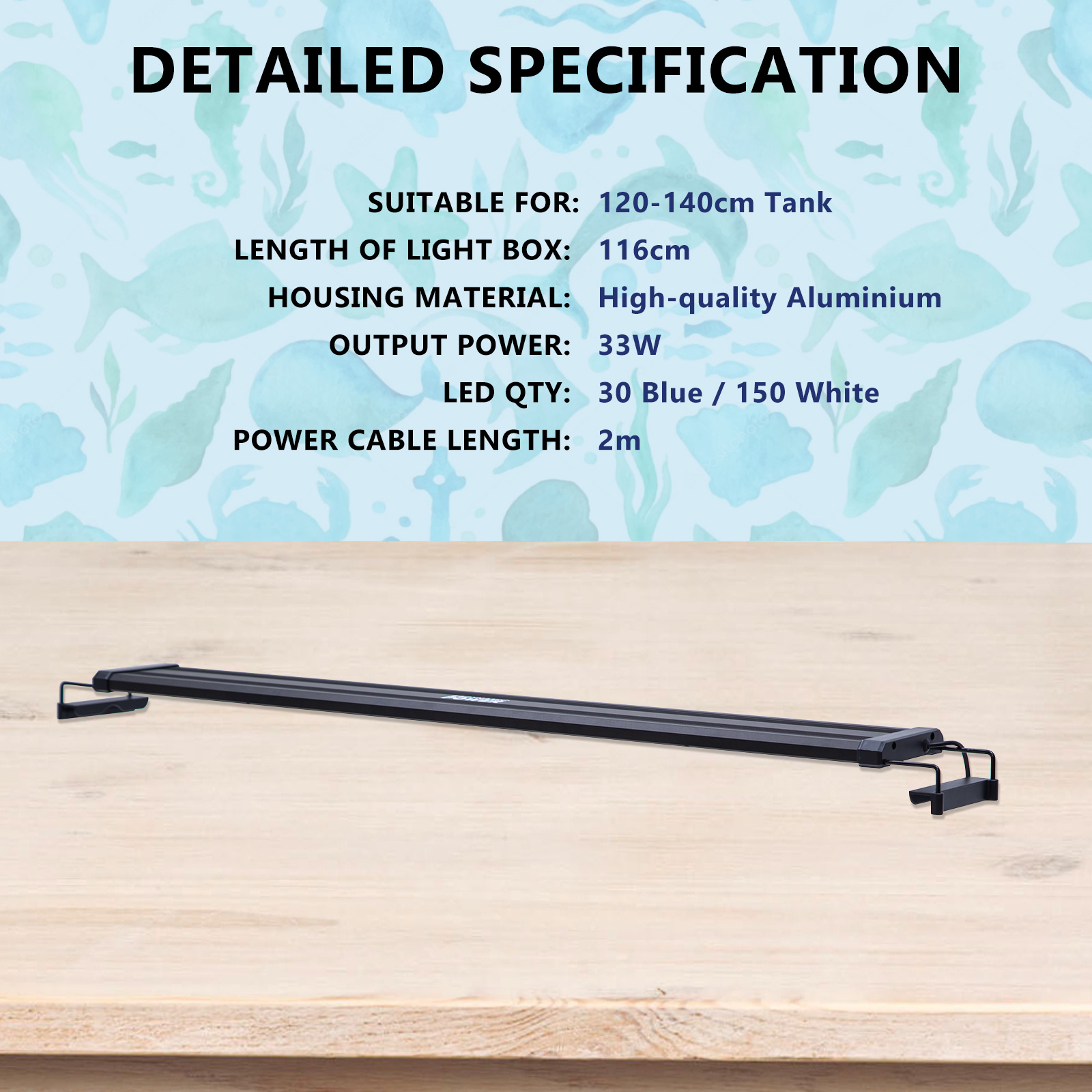 - Adjustable mount designed, suitable for 95-115cm fish tank