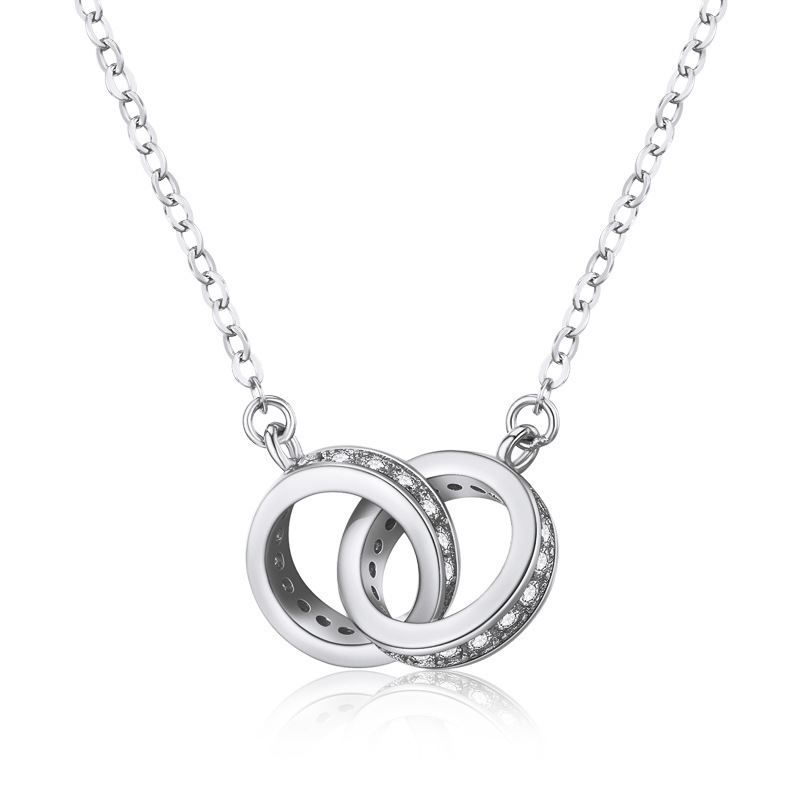2pc Elegant Interlocking Rings Pendant Necklace with Zirconia Accents – Copper Base, Minimalist Jewelry(platinum)