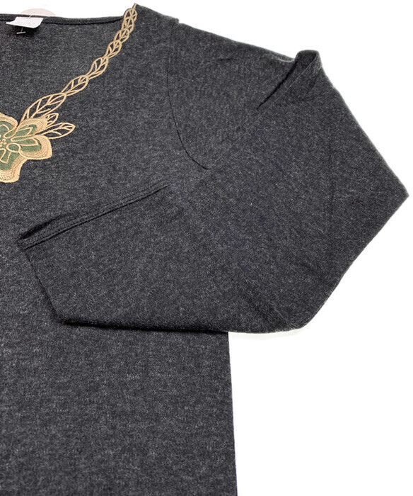 - Beautiful floral embroidered pattern on front v-neck.