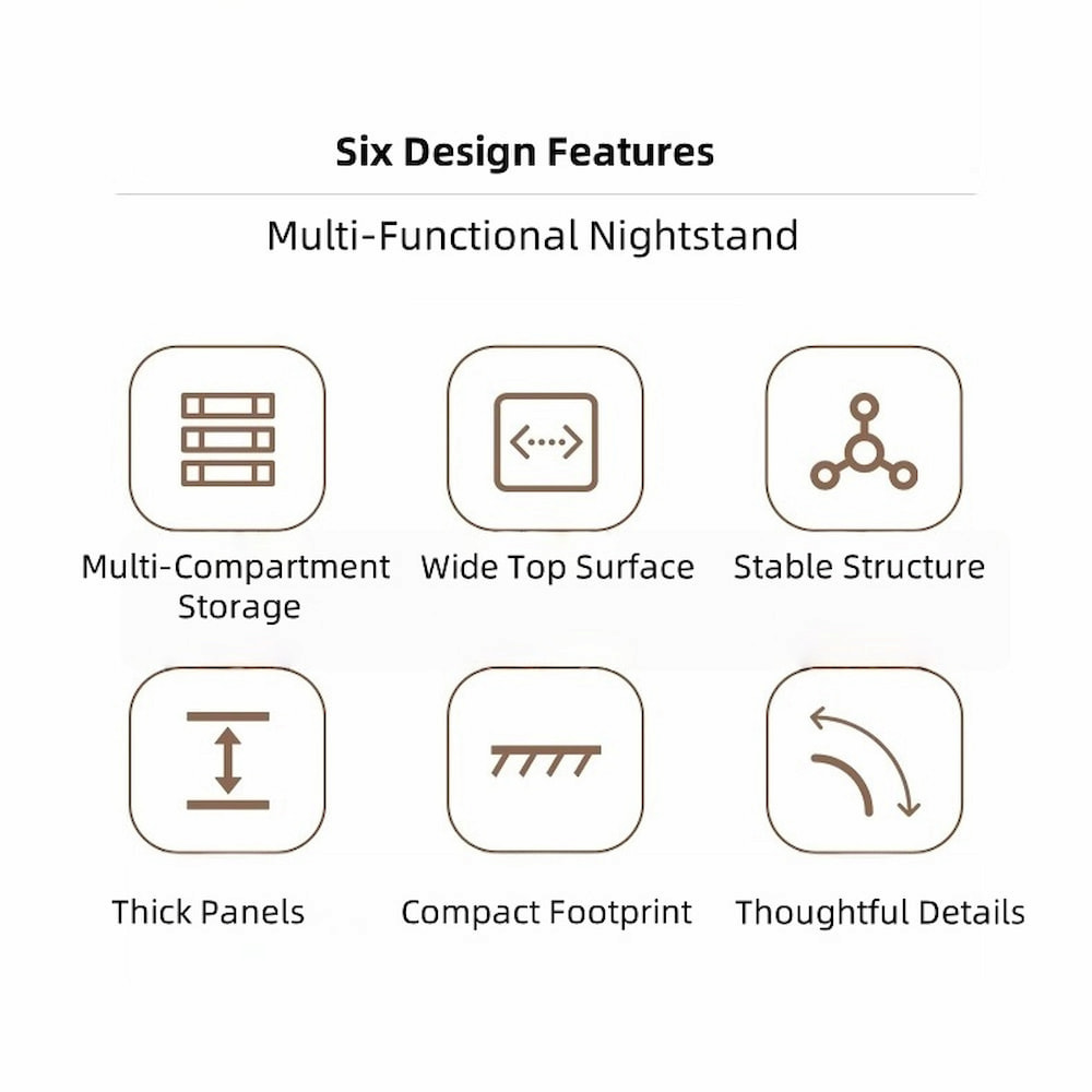 This Nordic-style bedside table features a minimalist modern design in warm white, complemented by natural wooden legs and drawer knobs, creating a cozy and comfortable visual effect. The upper section is designed with open storage areas, including a tray-like top and a middle shelf, perfect for placing lamps, books, and other frequently used items. The bottom section features two spacious drawers, providing ample private storage space. The elegant curved side design adds a modern touch, while the four small wooden round legs elevate the overall height, making floor cleaning easier. This bedside table is simple and elegant, suitable for various modern bedroom styles.