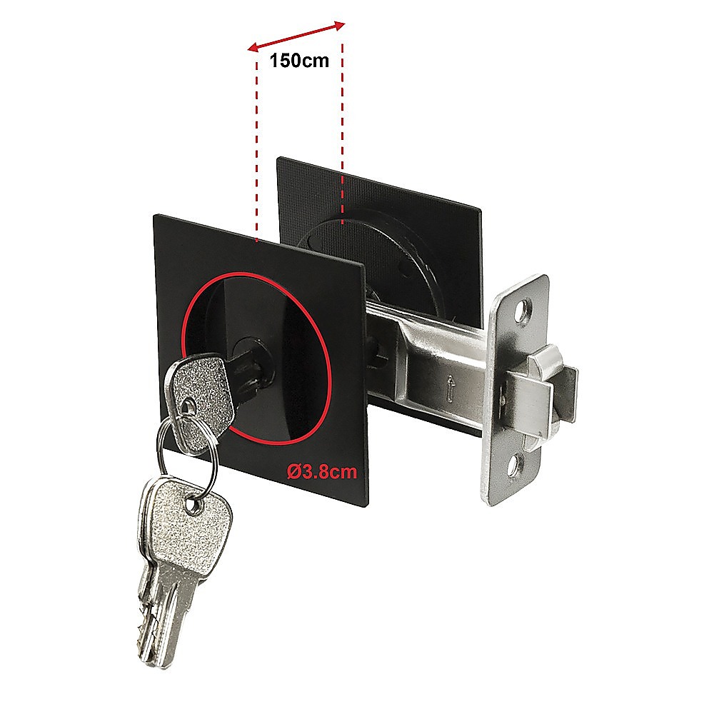 2x Contemporary Entry Square Pocket Door Hardware with Key