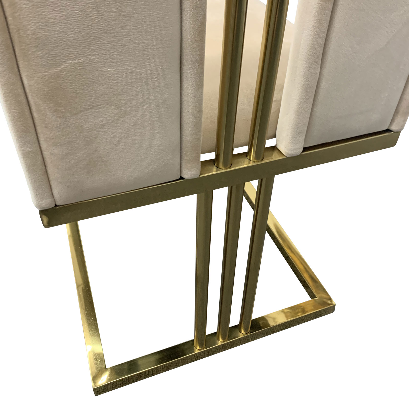 2X Dining Chair Stainless Gold Frame & Seat Beige Fabric