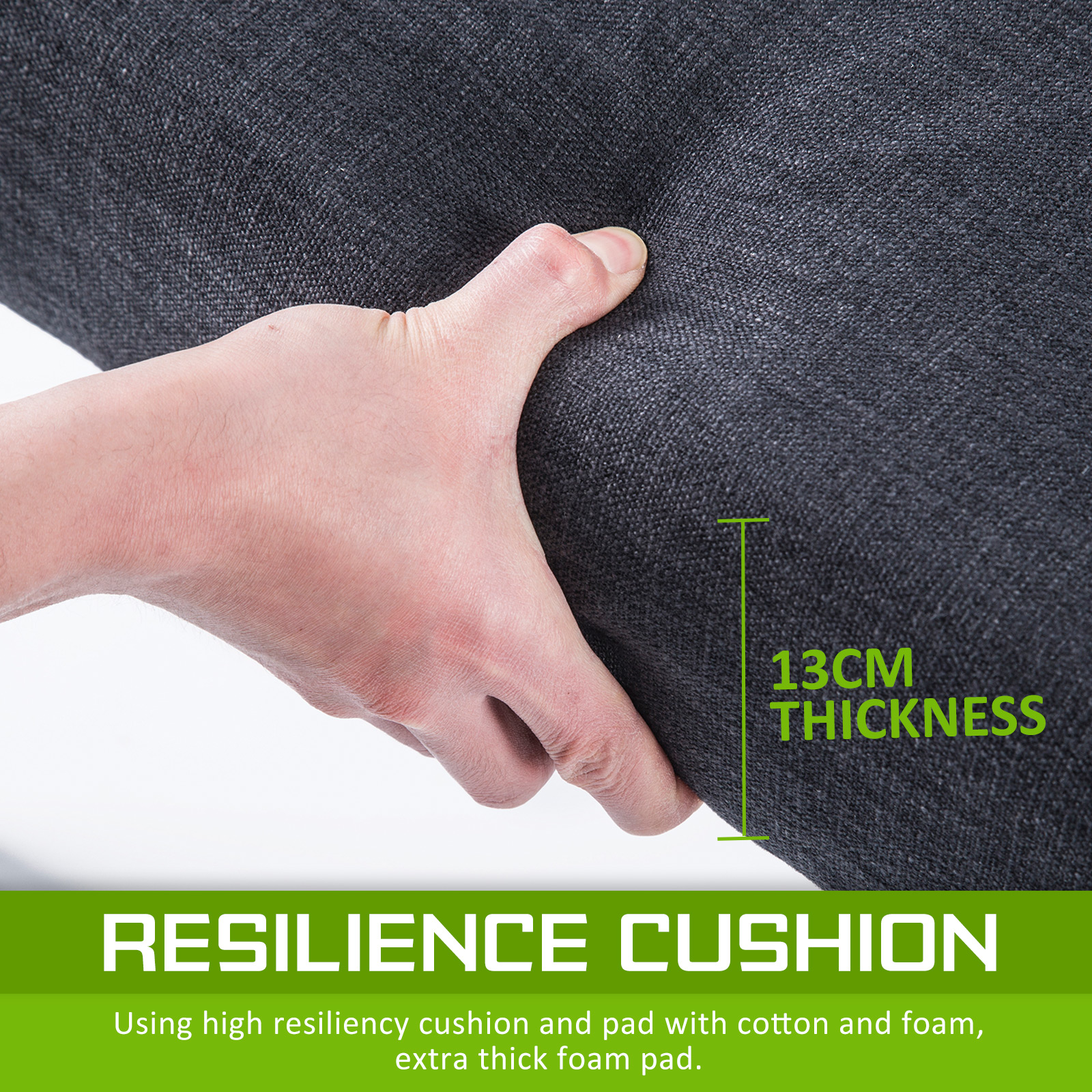 - 13cm thick seat cushioning with high resilience foam