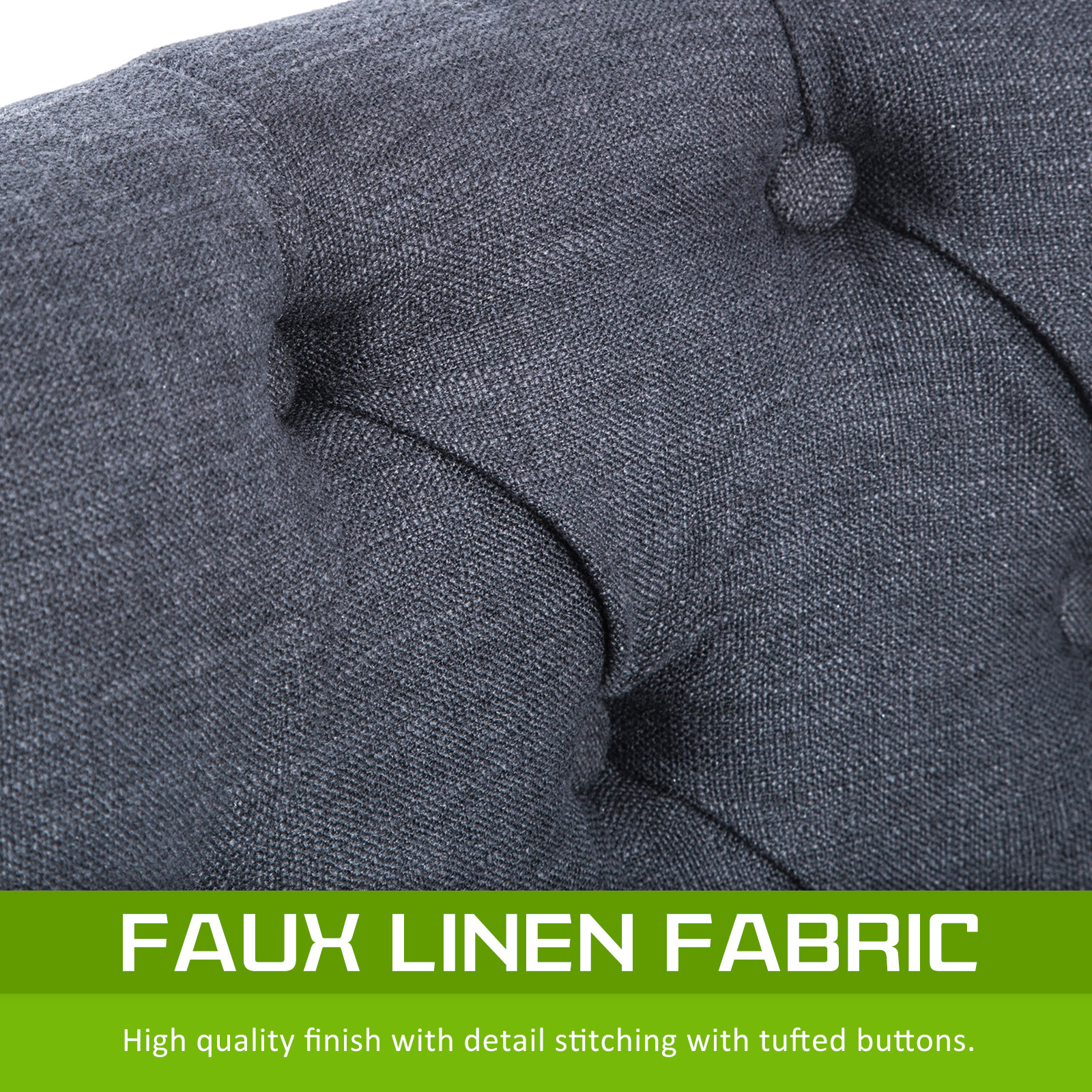 - Elegant fabric upholstered with deep tufting