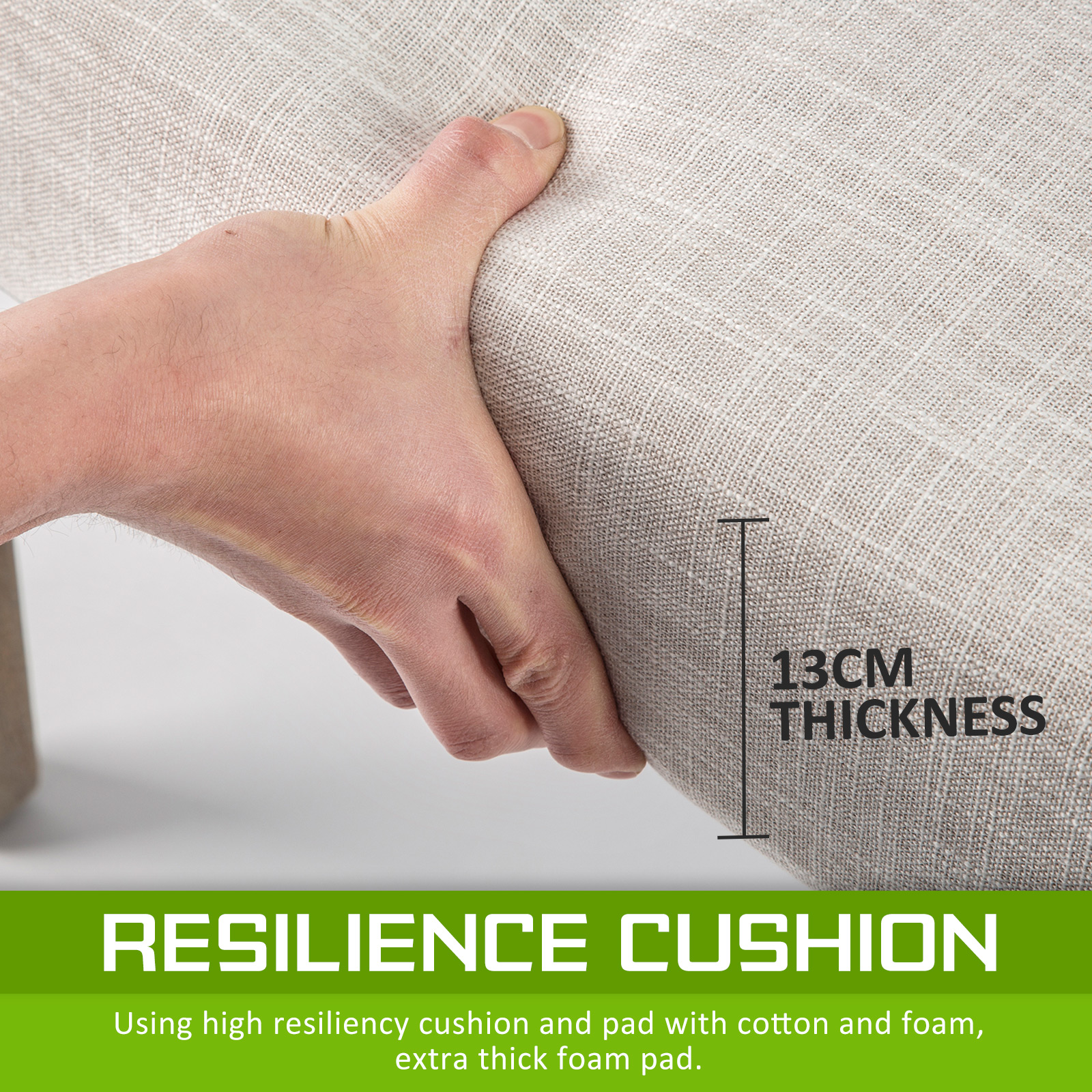 - 13cm thick seat cushioning with high resilience foam