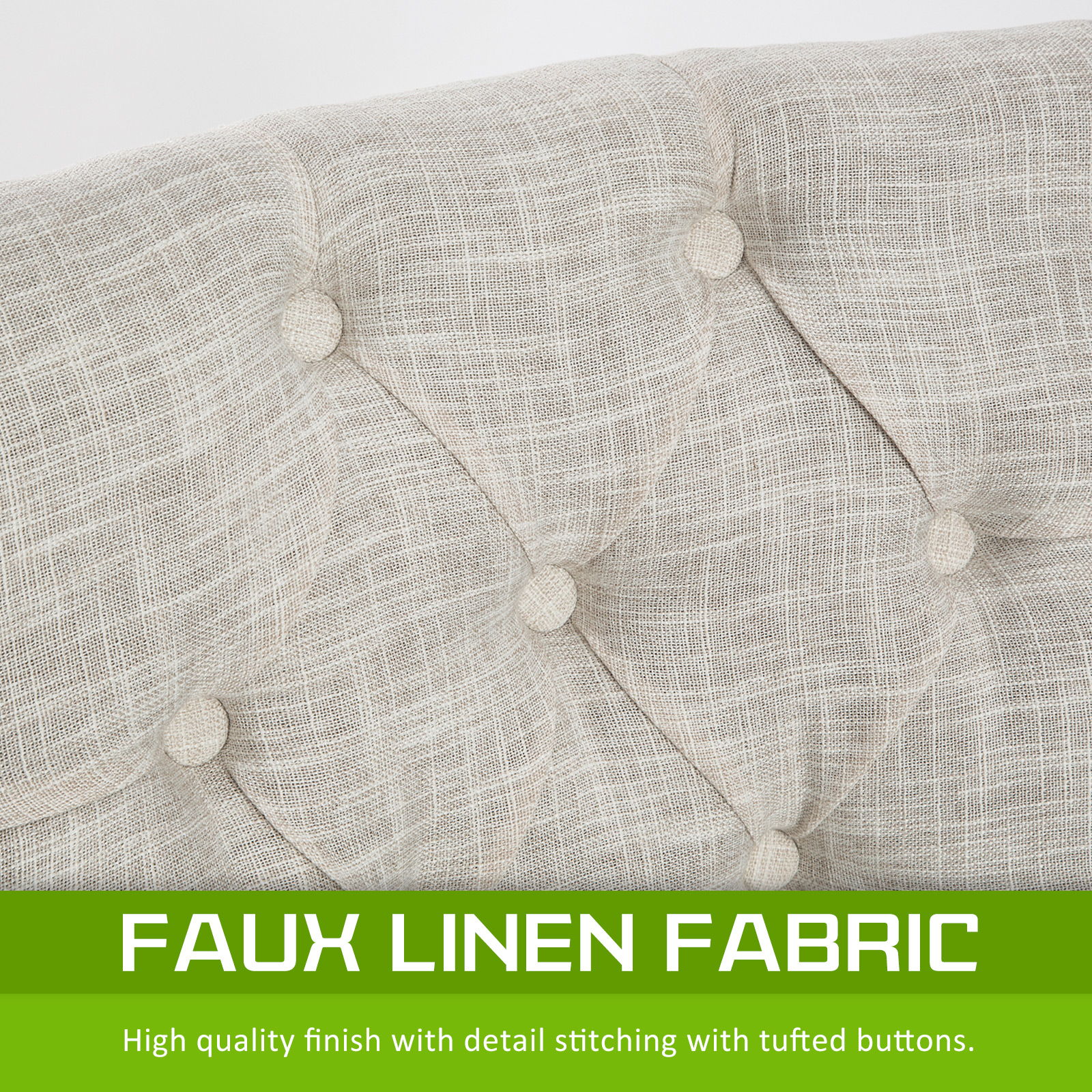 Upholstery Fabric: High-quality linen fabric with brass studs