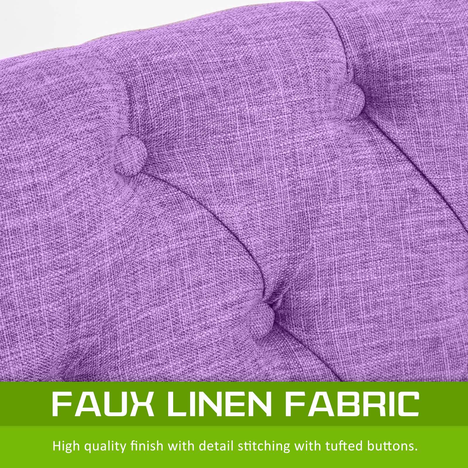 - Elegant fabric upholstered with deep tufting