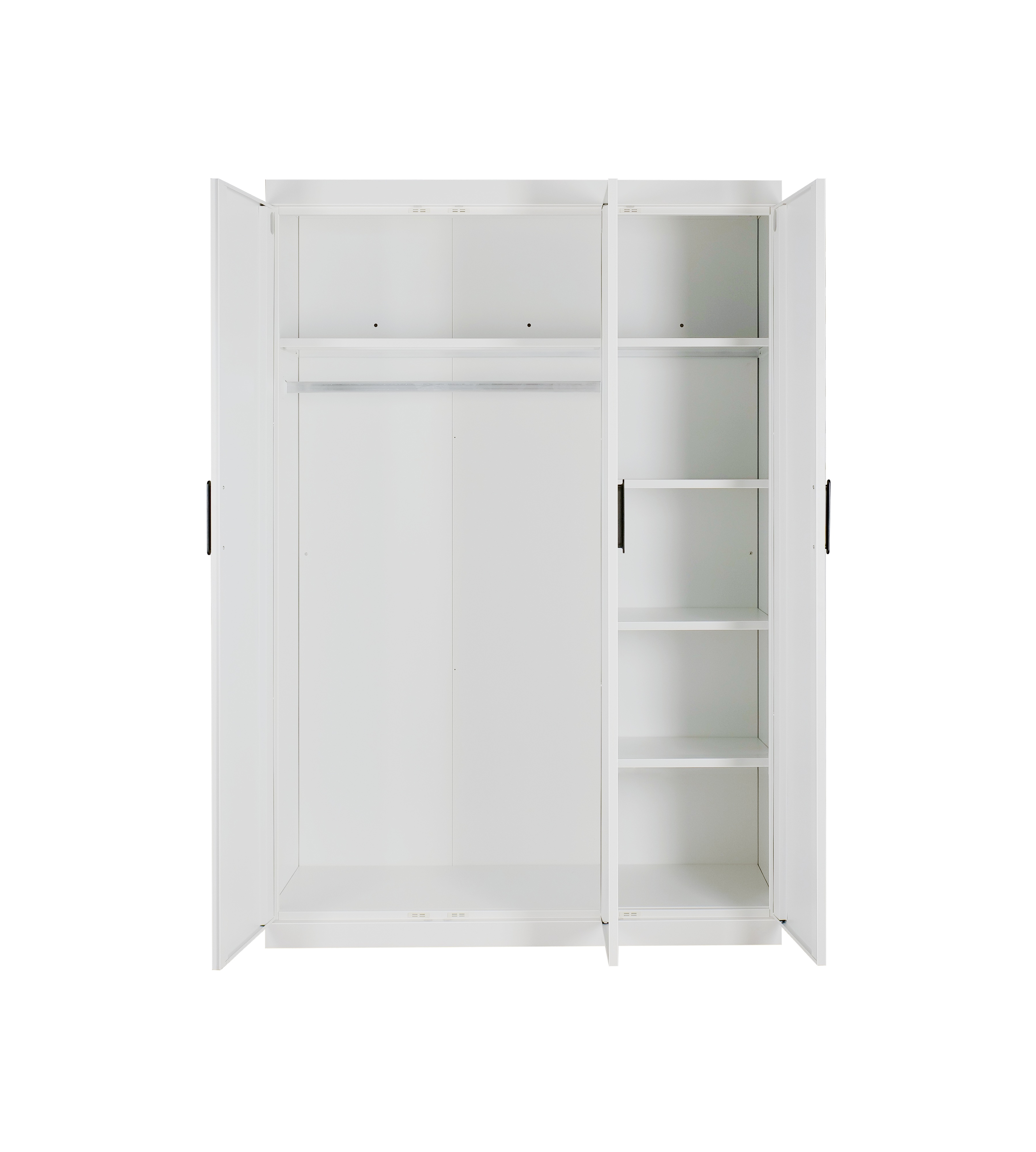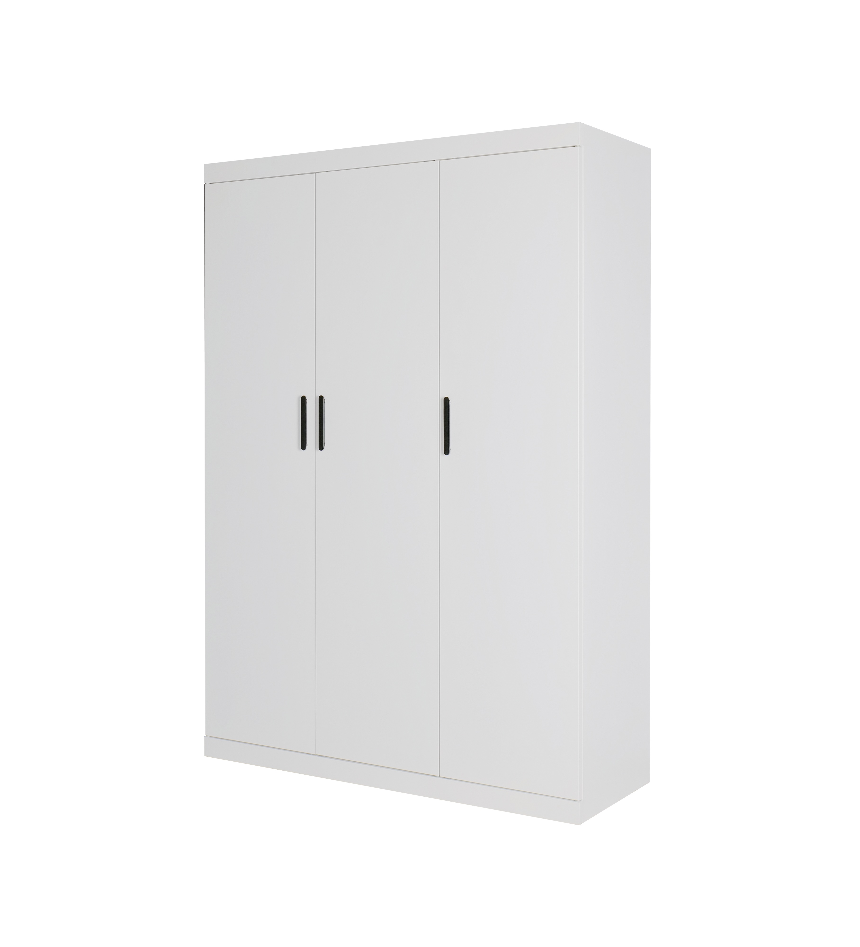 3 Door White Gloss Wardrobe – Black Handles, Hanging Rail & Shelves