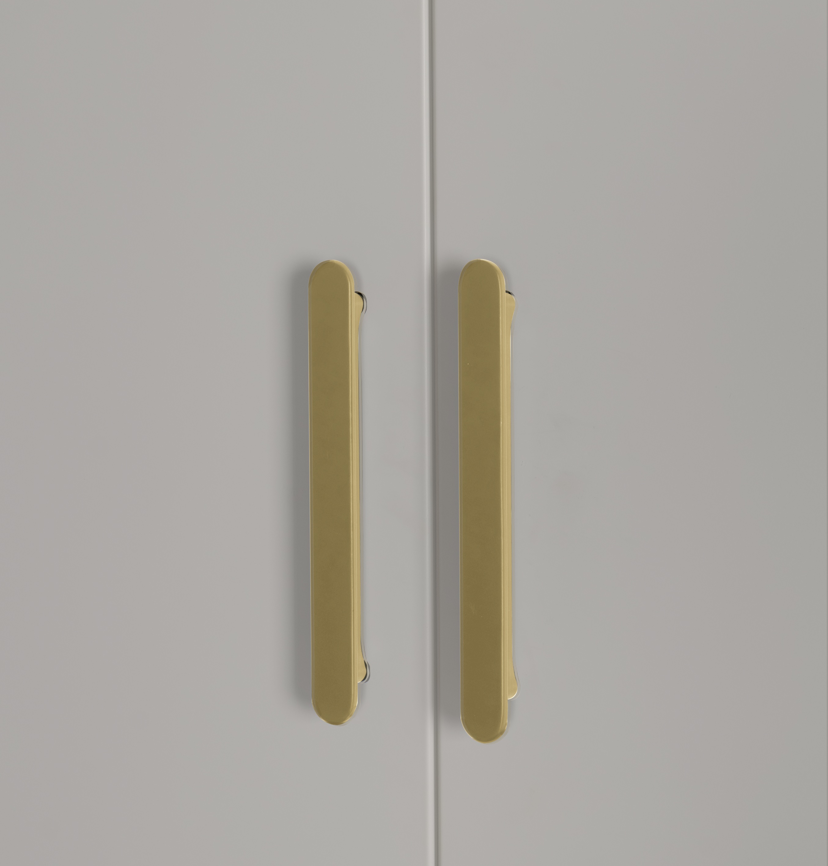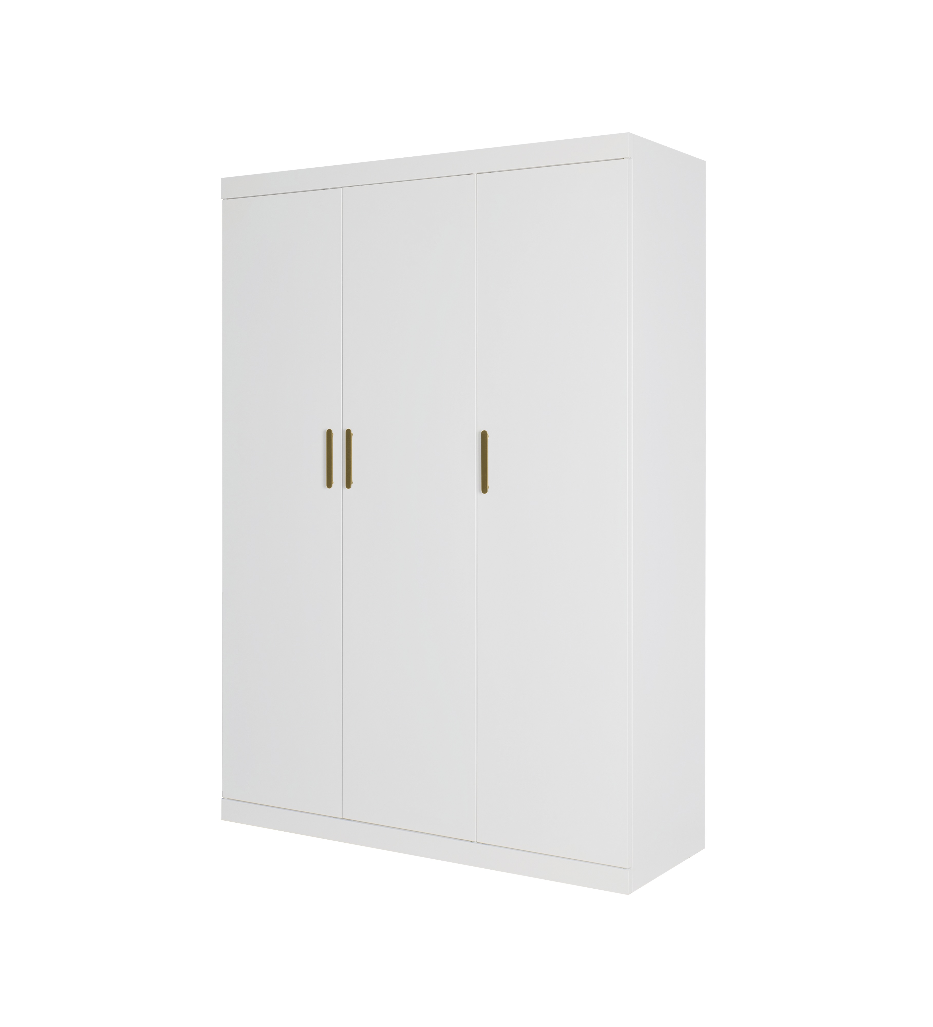 3 Door White Gloss Wardrobe – Gold Handles, Hanging Rail & Shelves