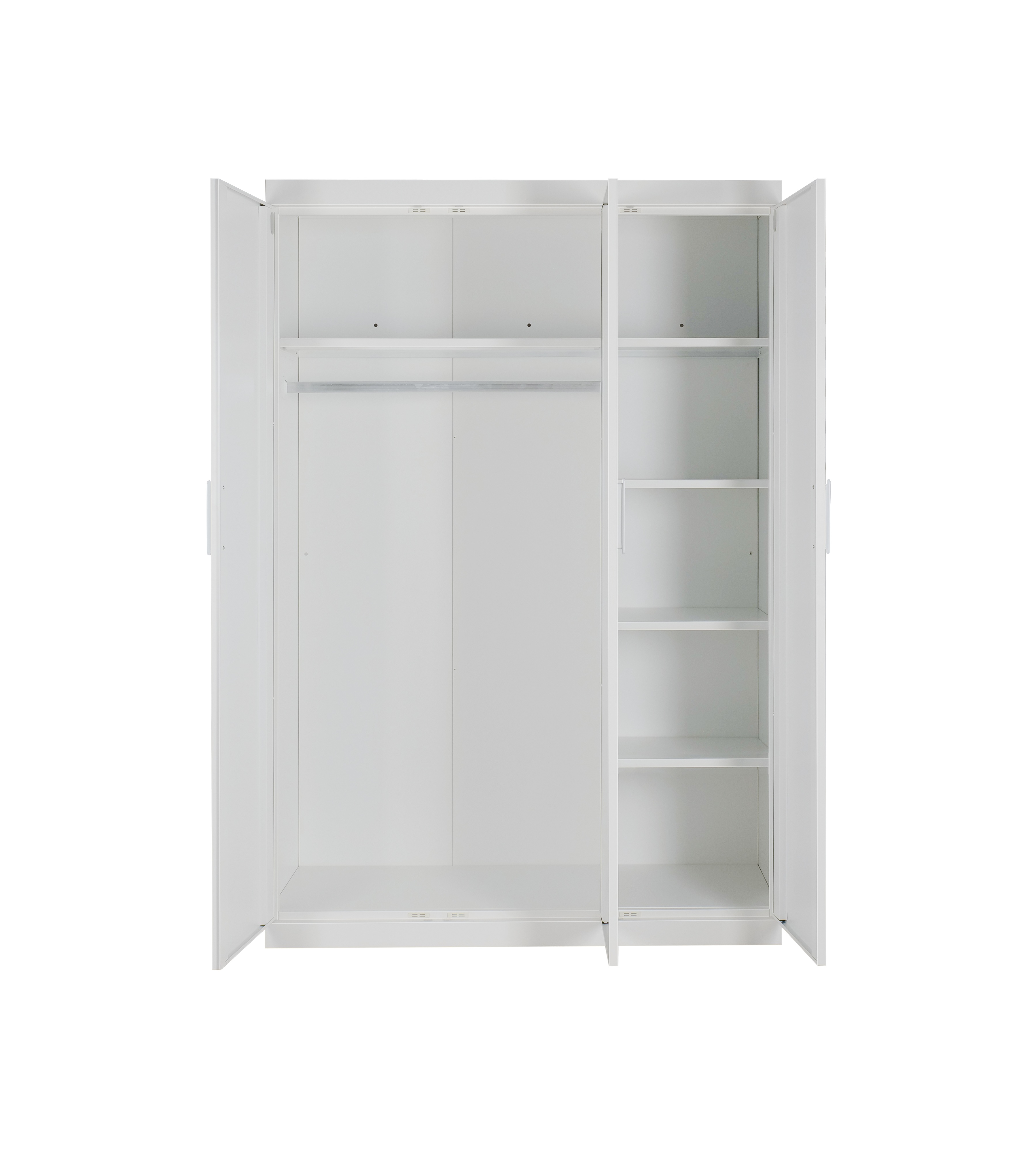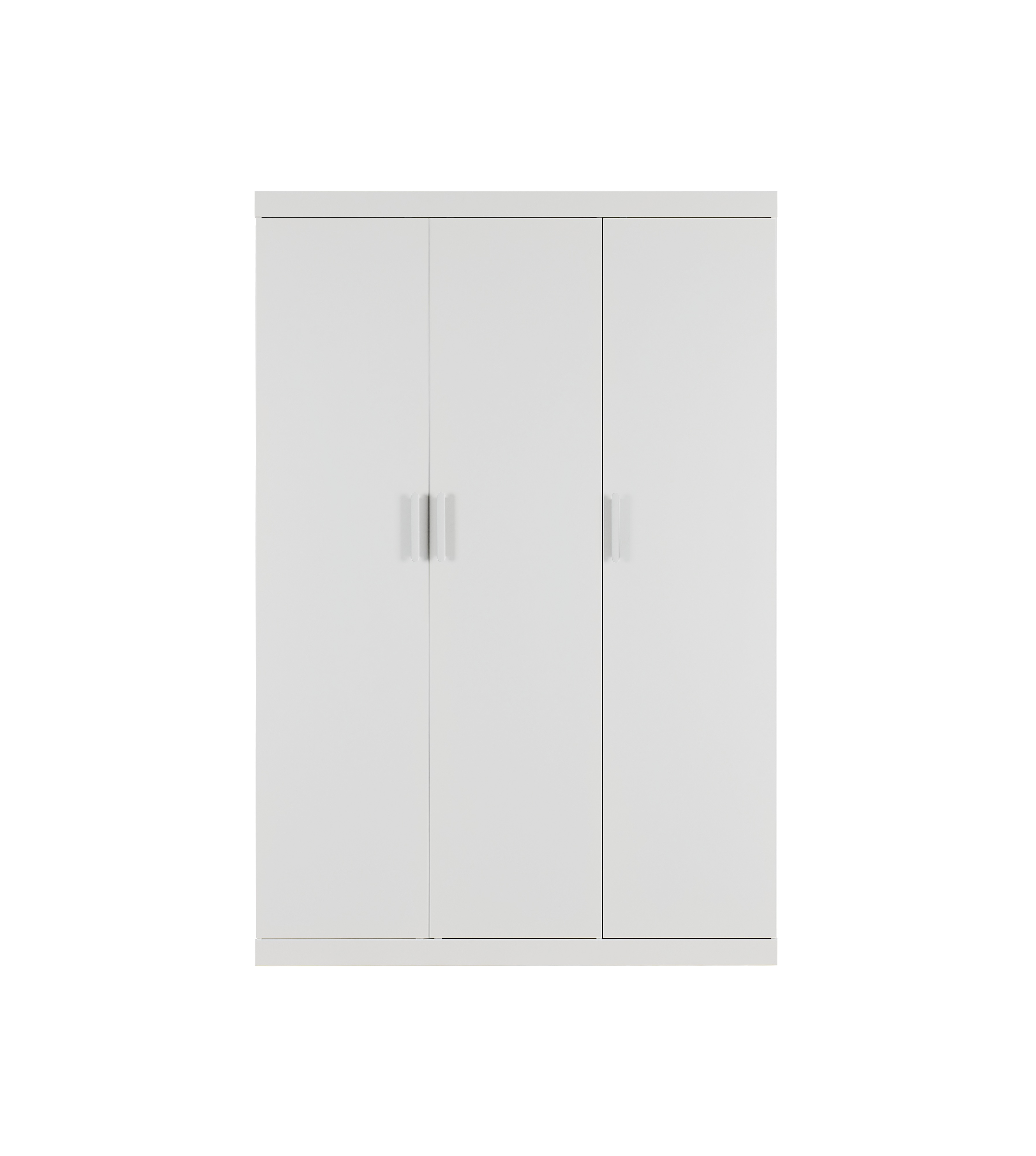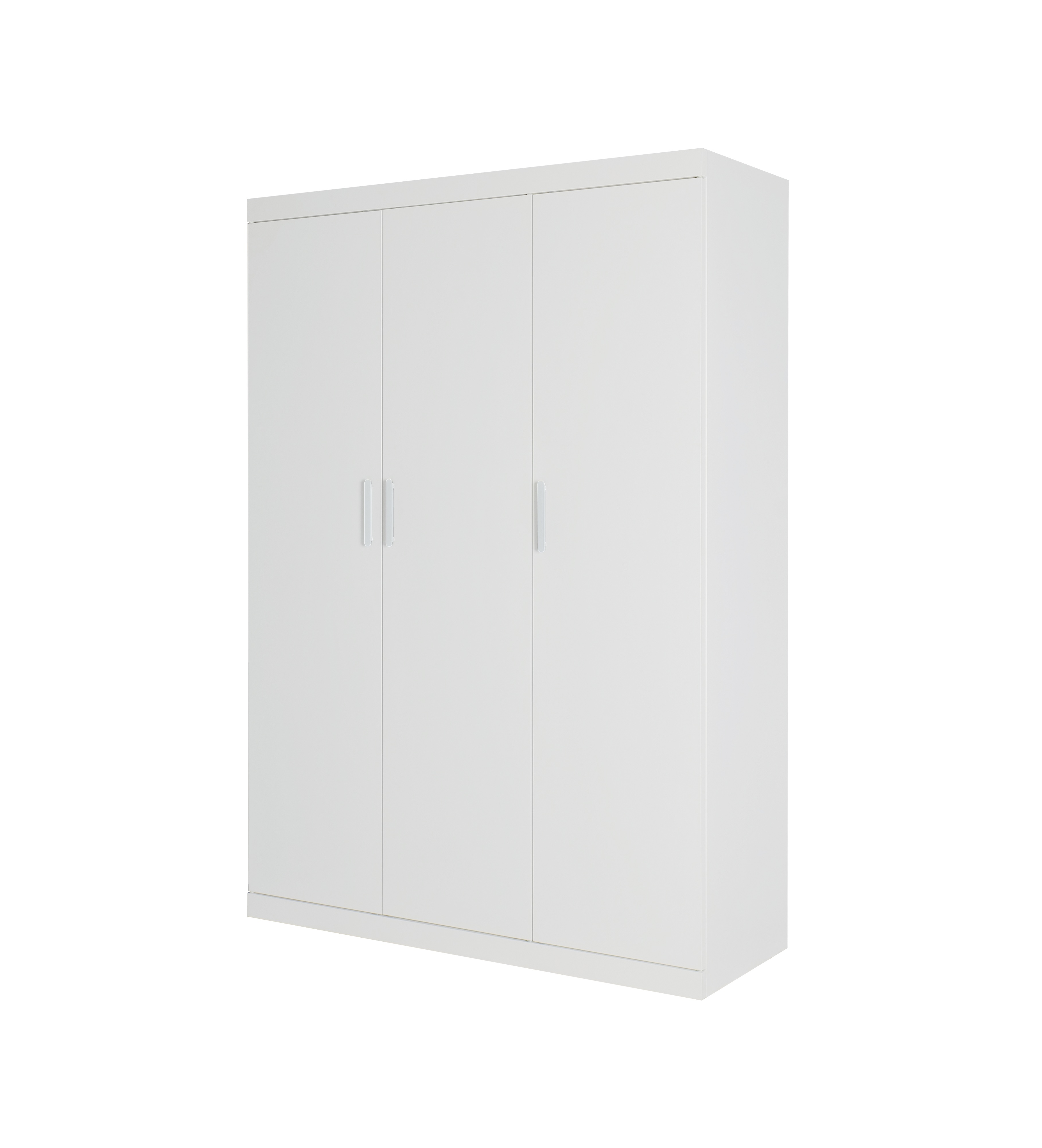 3 Door White Gloss Wardrobe – White Handles, Hanging Rail & Shelves