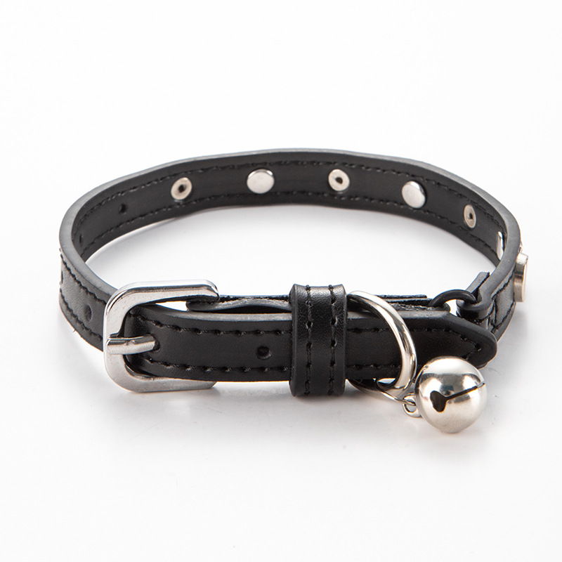 3 pcs Black Stylish PU Leather Pet Collar – Anti-Loss, Puppy Bell, Star & Moon Design Width 1.2cm Total Length 35cm