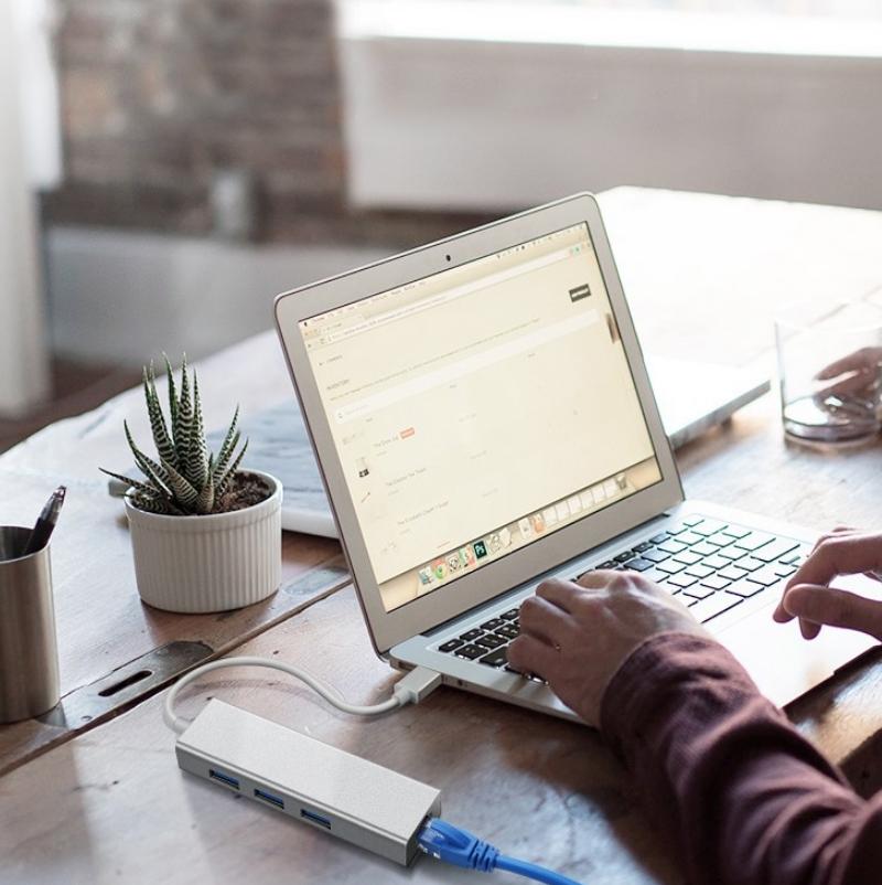 3-Port Usb 3.0 + Rj45 External Hub For Laptops