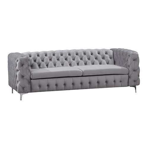 3 Seater Sofa Classic Button Tufted Lounge in Grey Velvet Fabric with Metal Legs